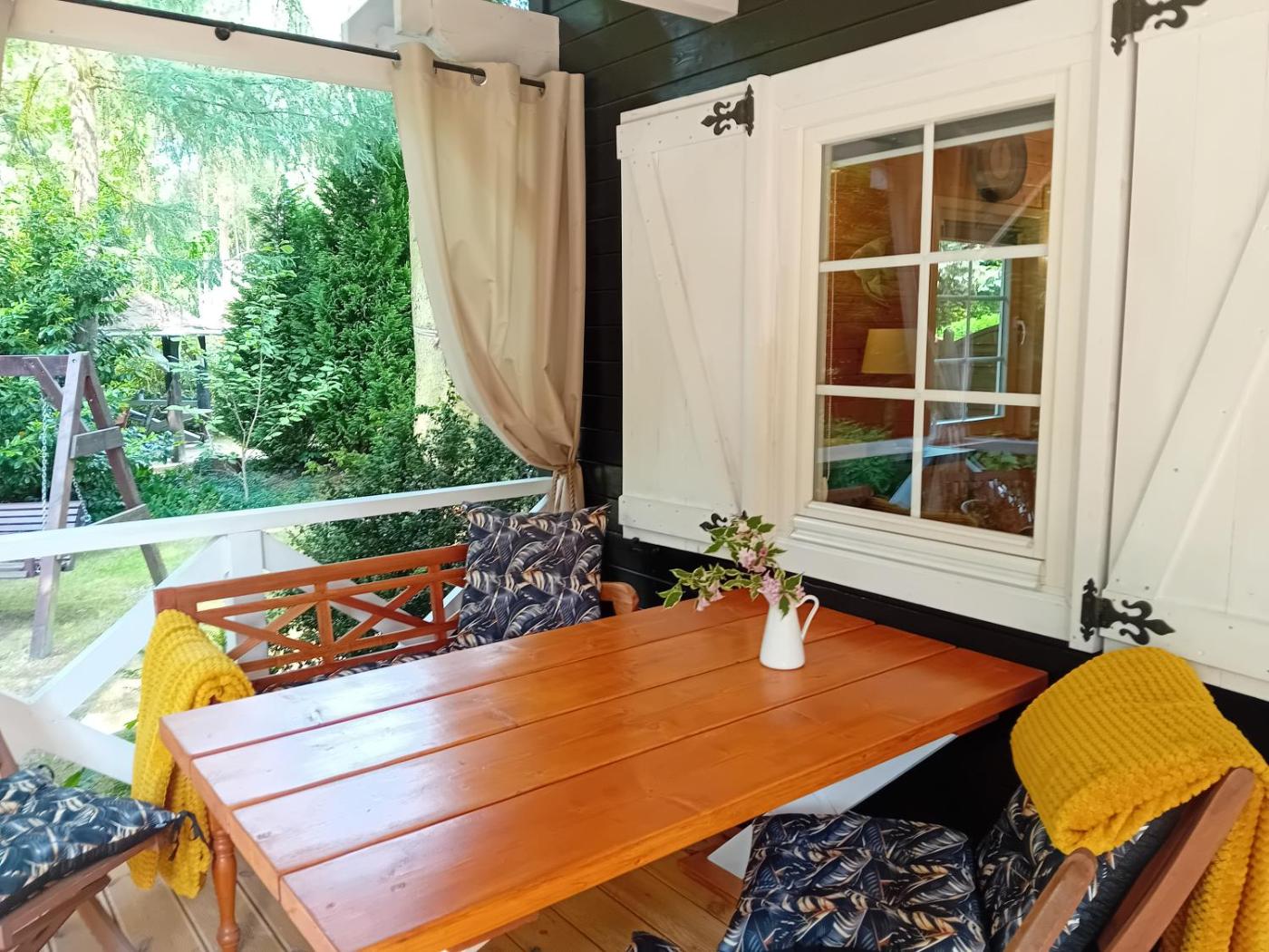 W domku zapewniono kilka sypialni (2), łazienkę (1), pościel, ręczniki oraz kuchnię z pełnym wyposażeniem. Do dyspozycji Gości jest także telewizor z płaskim ekranem oraz taras z widokiem na ogród.