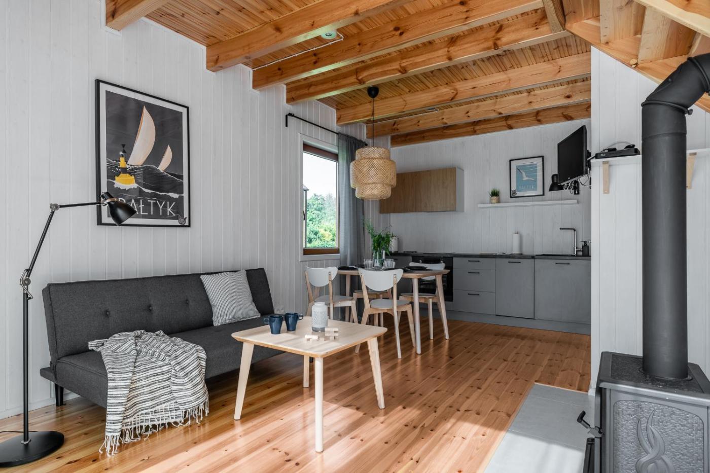 Dom z 2 sypialniami. This holiday home offers a fireplace. Featuring a private entrance, this holiday home comprises 1 living room, 2 separate bedrooms and 1 bathroom with a walk-in shower and a hairdryer. Guests will find a stovetop, a refrigerator, a dishwasher and kitchenware in the well-fitted kitchenette. The holiday home also provides guests with a barbecue. Boasting a terrace with garden views, this holiday home also provides a dining area and a flat-screen TV with satellite channels. The unit offers 4 beds. Dom wakacyjny - 5 osobowy. Powierzchnia pokoju ok.: 55 mkw. ;