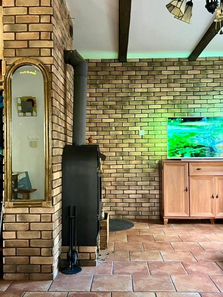 Dom wakacyjny. This holiday homes special feature is the fireplace. This holiday home consists of 1 living room, 3 separate bedrooms and 1 bathroom with a shower and a hairdryer. Guests will find a stovetop, a refrigerator, a dishwasher and kitchenware in the kitchen. The holiday home also offers a barbecue. Featuring a terrace with lake views, this holiday home also provides a tea and coffee maker and a flat-screen TV. The unit offers 6 beds. Dom wakacyjny - 7 osobowy. Powierzchnia pokoju ok.: 80 mkw.