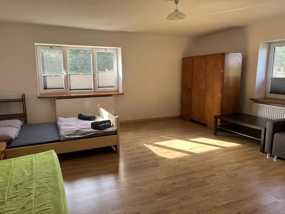 Dom wakacyjny. The holiday homes kitchen, which has a refrigerator and kitchenware, is available for cooking and storing food. This holiday home features a shared bathroom, a tea and coffee maker and garden views. The unit offers 7 beds. Dom wakacyjny - 10 osobowy. Powierzchnia pokoju ok.: 100 mkw.