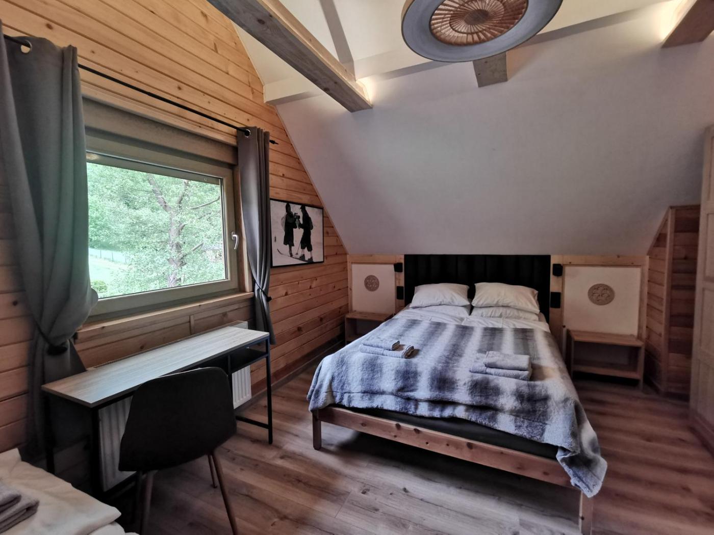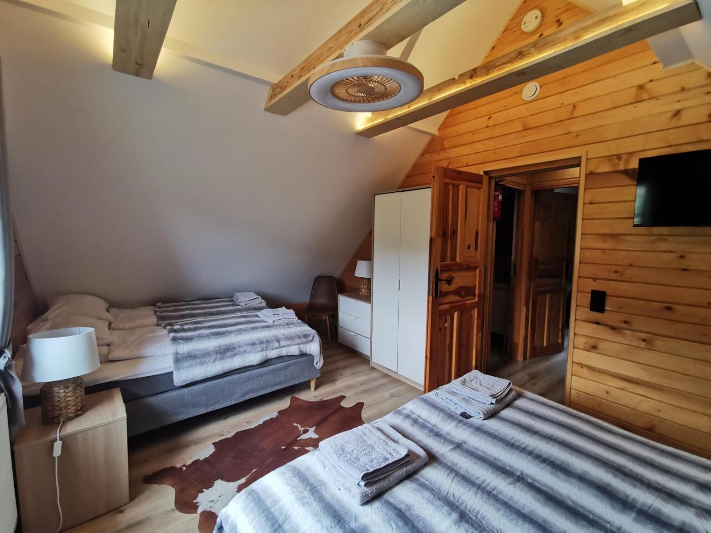 Dom wakacyjny. Guests will have a special experience as this holiday home features a sauna and a fireplace. This spacious holiday home is comprised of 1 living room, 3 separate bedrooms and 2 bathrooms with a shower and a hairdryer. Guests will find a stovetop, a refrigerator, a dishwasher and kitchenware in the kitchen. The holiday home also has a barbecue. Featuring a terrace with garden views, this holiday home also offers a coffee machine and a flat-screen TV with satellite channels. The unit offers 7 beds. Dom wakacyjny - 8 osobowy. Powierzchnia pokoju ok.: 120 mkw.